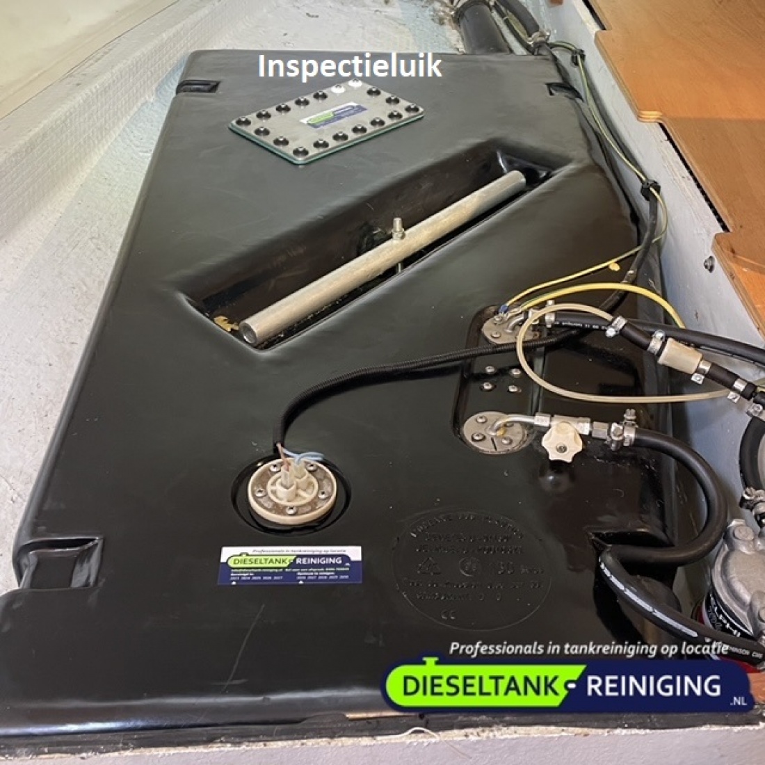 We bouwden een serviceluik in de kunststof tank. Hierbij kozen we voor ons eigen RVS model. Goedkoper alternatief in kunststof tanks zijn misschien de schroefdeksels van Vetus. Maar in situaties waarbij de boot stevig naar een kant overhelt, deze deksels niet altijd even lekvrij blijven.
